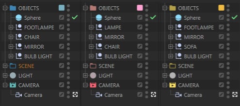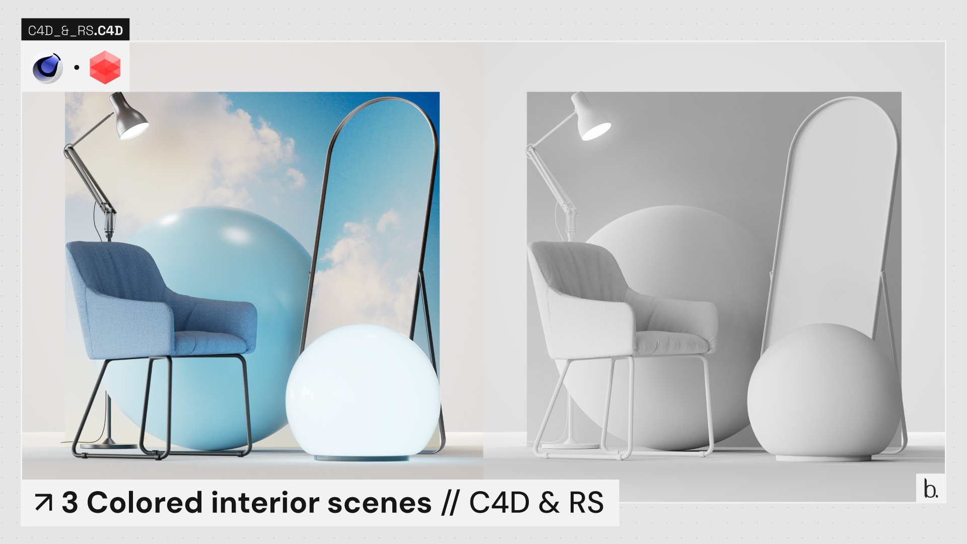 x3 Colored Interior scenes - Blue - Pink - Yellow // Cinema 4D and Redshift