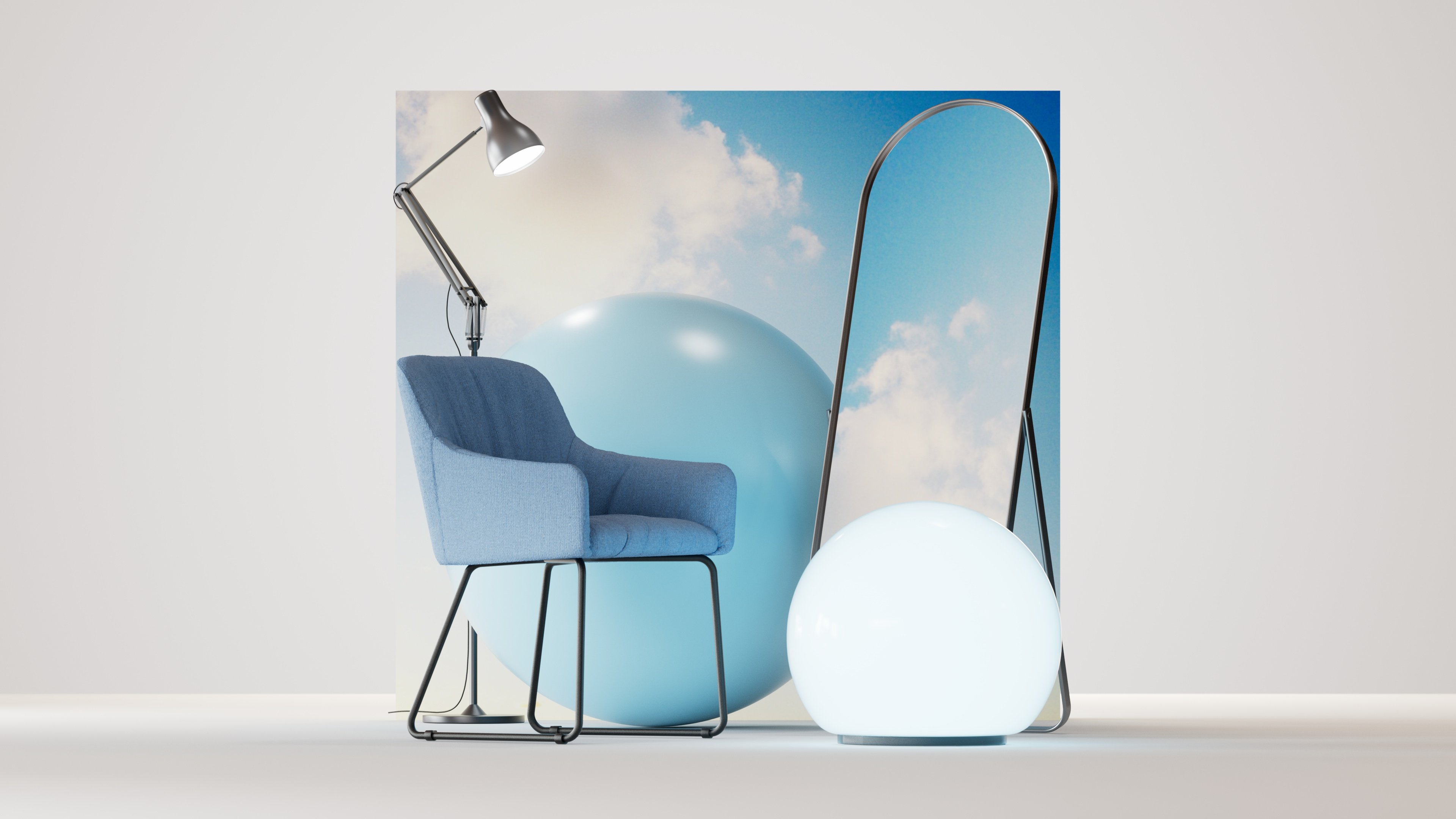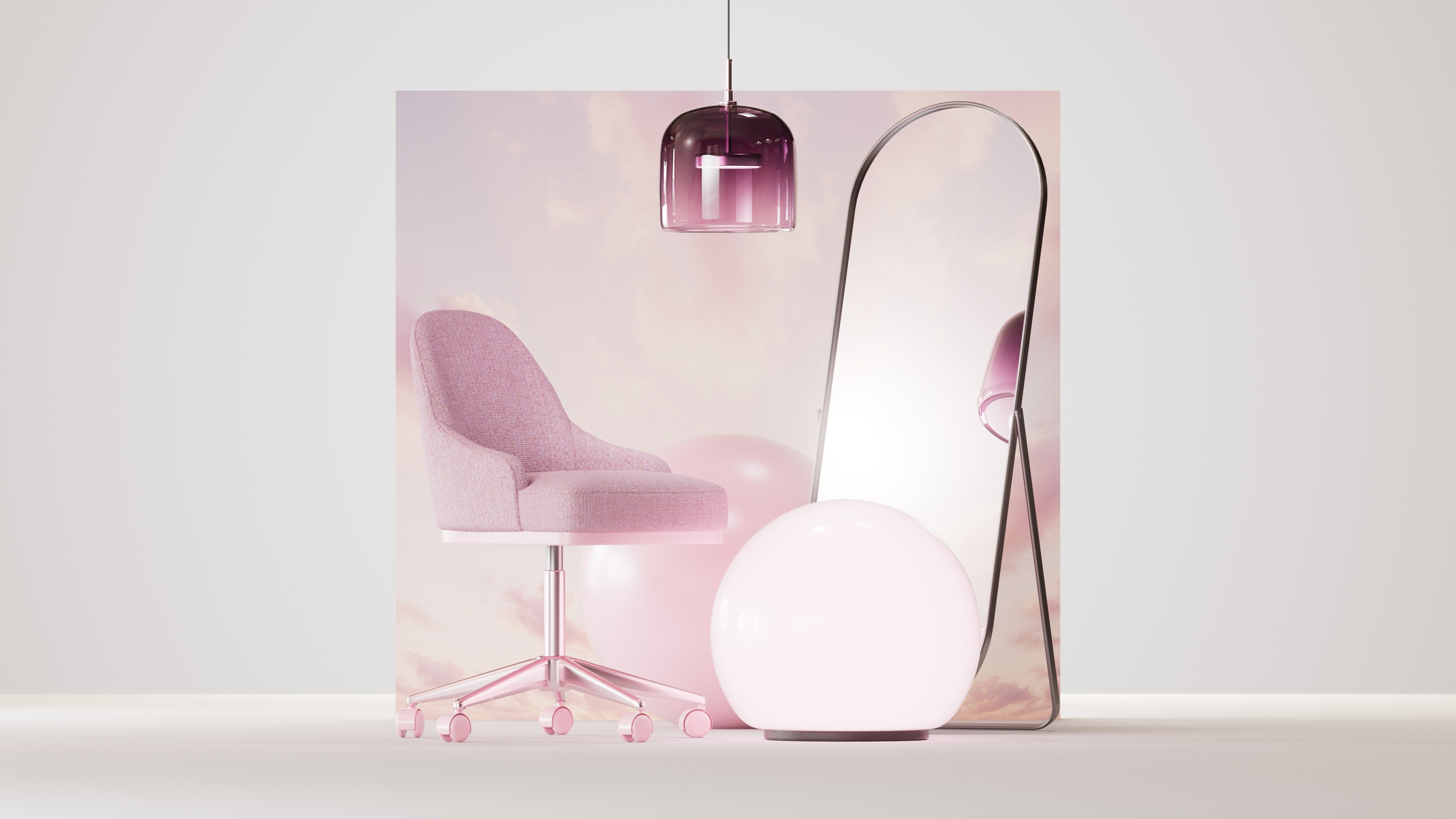 Cinema 4D and Redshift X3 interio scenes, Blue - Pink - Yellow